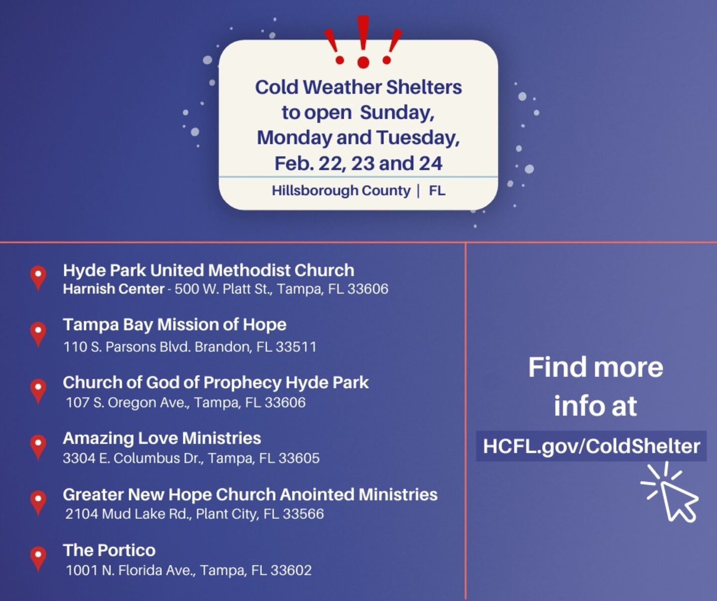 So that means the cold weather shelters will open again tonight. Please check with your respective counties for additional information.