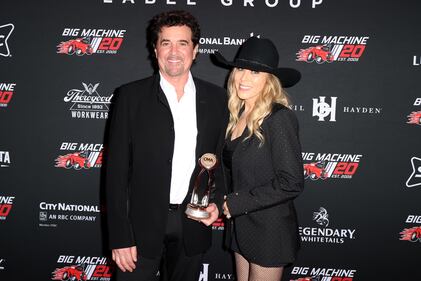 Big Machine Label Group Celebrates The 59th Annual CMA Awards in Nashville NASHVILLE, TENNESSEE - NOVEMBER 19: (L-R) Scott Borchetta and Sandi Spika Borchetta attend as Big Machine Label Group Celebrates The 59th Annual CMA Awards at The Bell Tower on November 19, 2025 in Nashville, Tennessee. (Photo by Brett Carlsen/Getty Images for Big Machine) (Brett Carlsen/Getty Images for Big Machine)