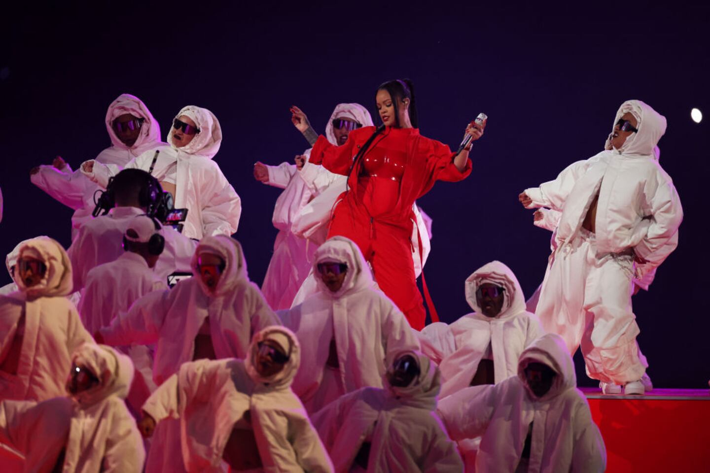 Apple Music Super Bowl LVII Halftime Show GLENDALE, ARIZONA - FEBRUARY 12: Rihanna performs onstage during the Apple Music Super Bowl LVII Halftime Show at State Farm Stadium on February 12, 2023 in Glendale, Arizona. (Photo by Ezra Shaw/Getty Images) (Ezra Shaw/Getty Images)