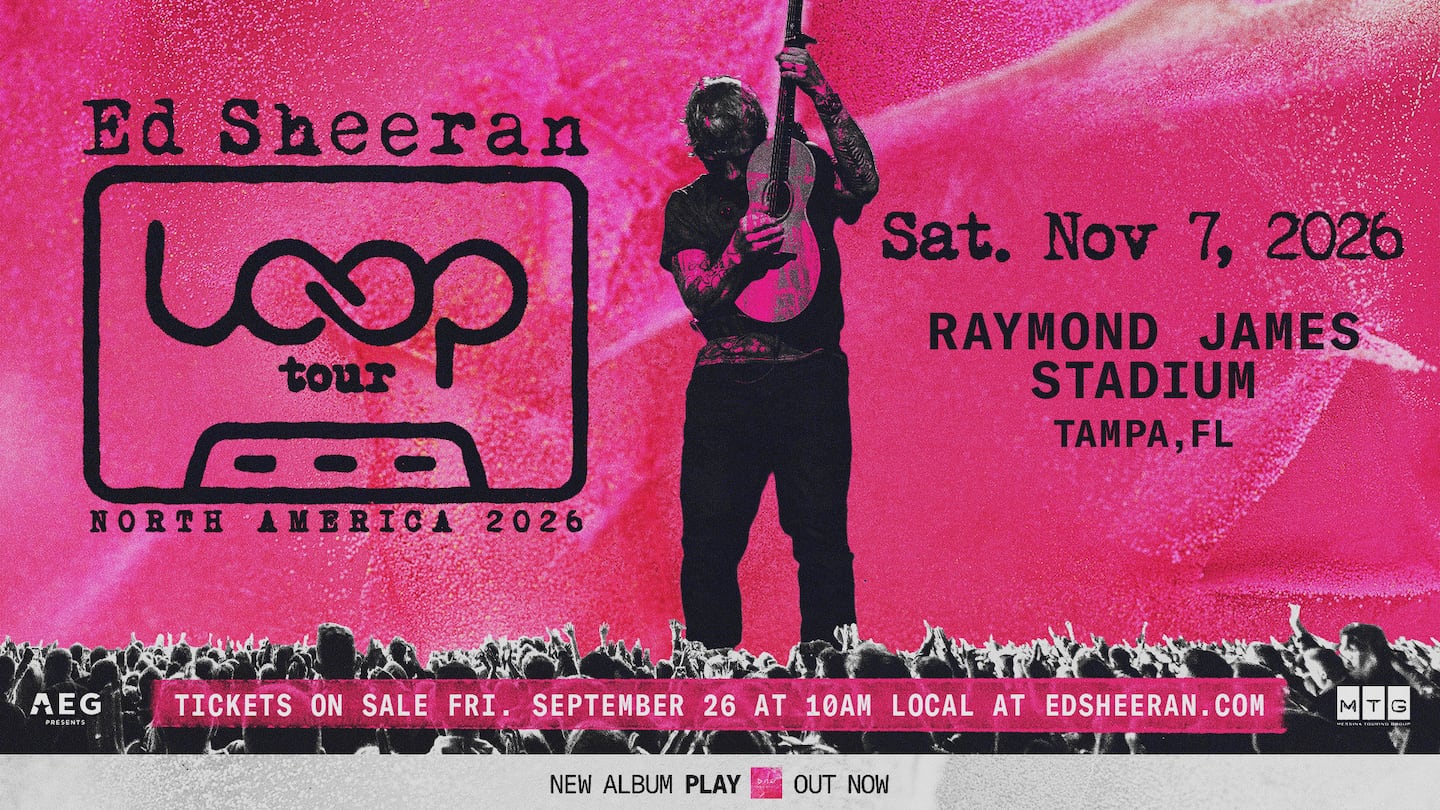 Ed Sheeran will be at Raymond James Stadium next fall as part of his LOOP tour in Tampa on Nov. 7, 2026. Tickets go on sale at 10 am this morning as well. There’s a great list of more events in the Dove Events Guide.