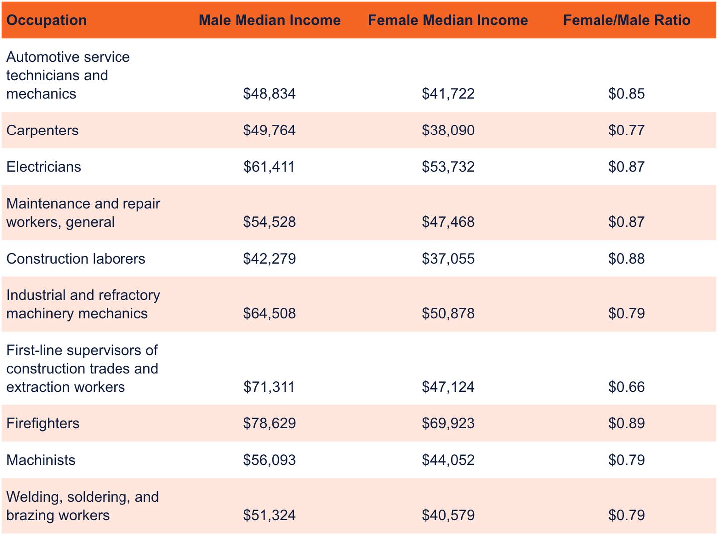 While females in occupations that skew heavily male still have a wage gap, some professions, such as construction, have a smaller wage gap than the national average.