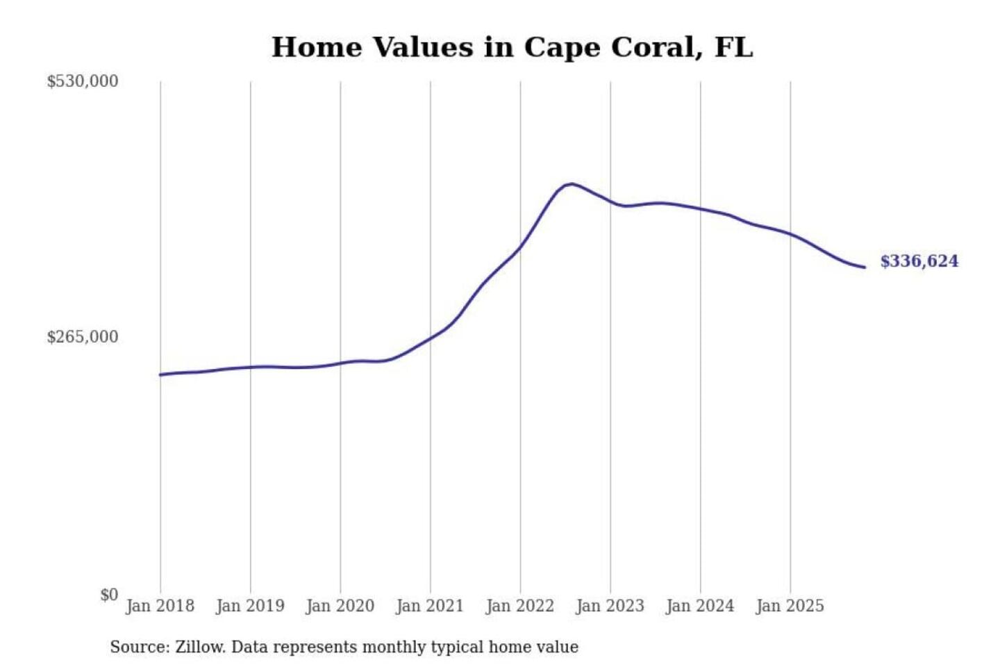 Stacker compiled a list of cities with the most expensive homes in the Cape Coral-Fort Myers, FL metro area using data from Zillow. Charts show the monthly typical home value since January 2018.