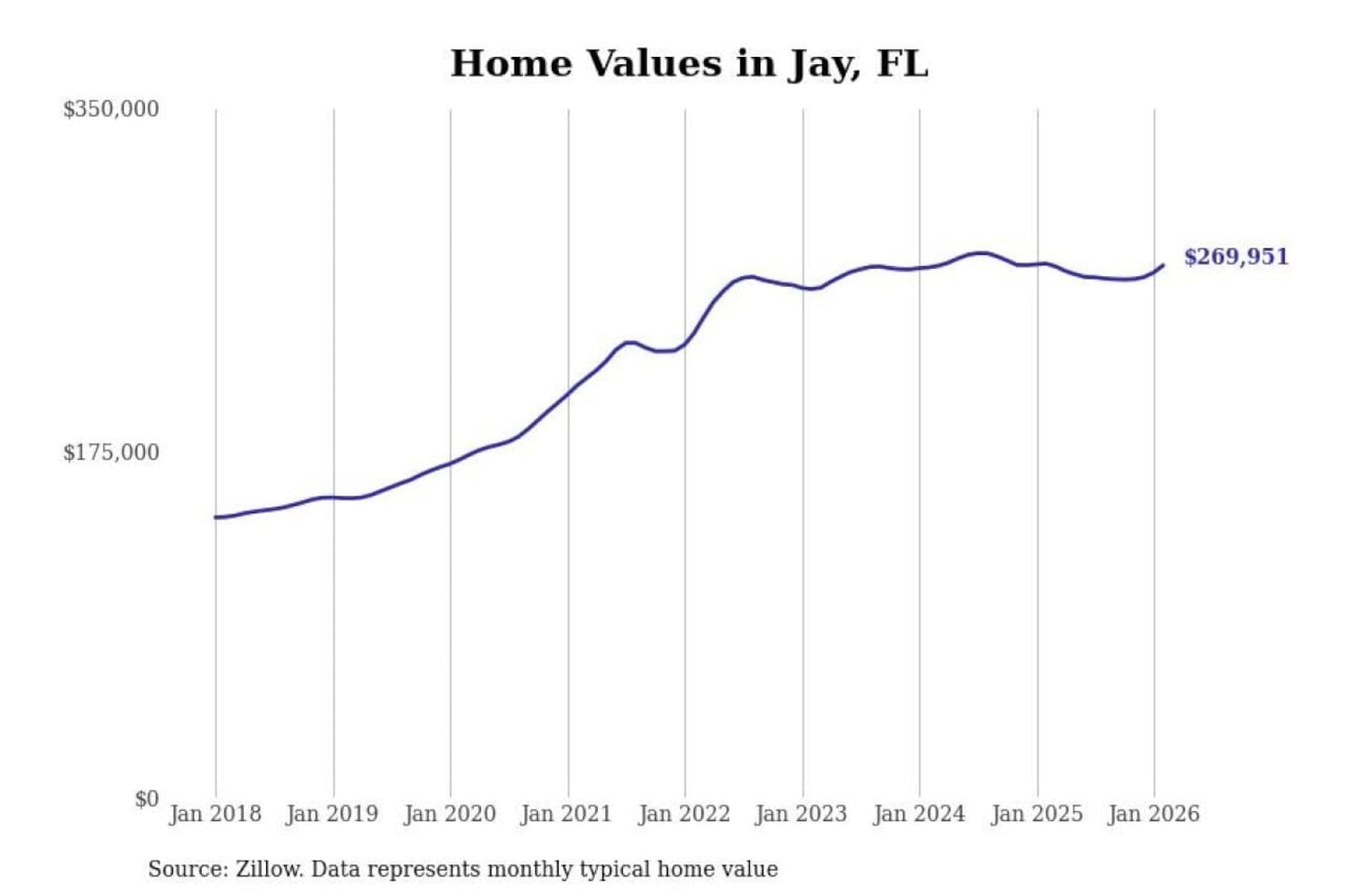 Stacker compiled a list of cities with the most expensive homes in the Pensacola-Ferry Pass-Brent, FL metro area using data from Zillow. Charts show the monthly typical home value since January 2018.