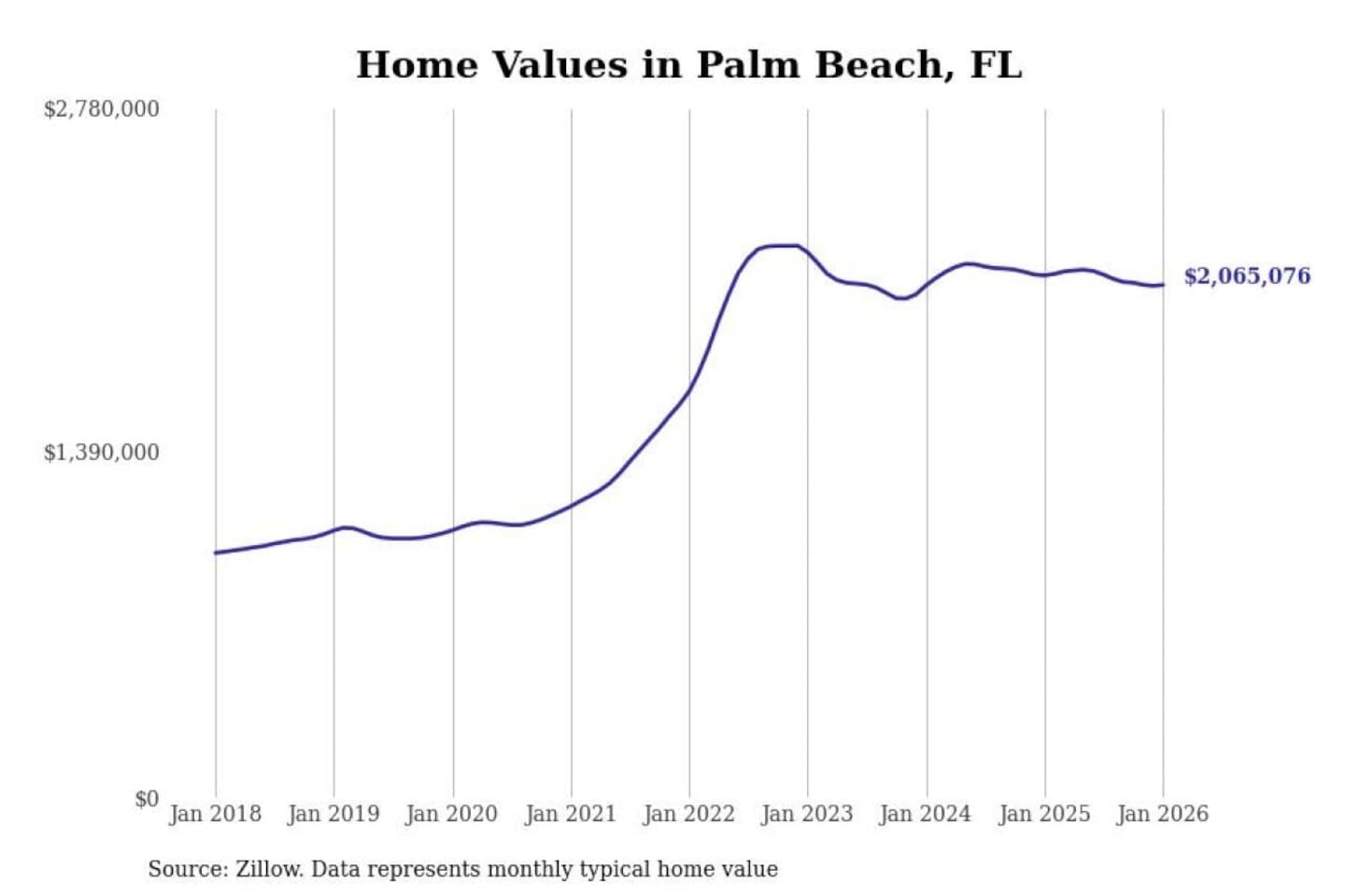 - Typical home value: $2,065,076