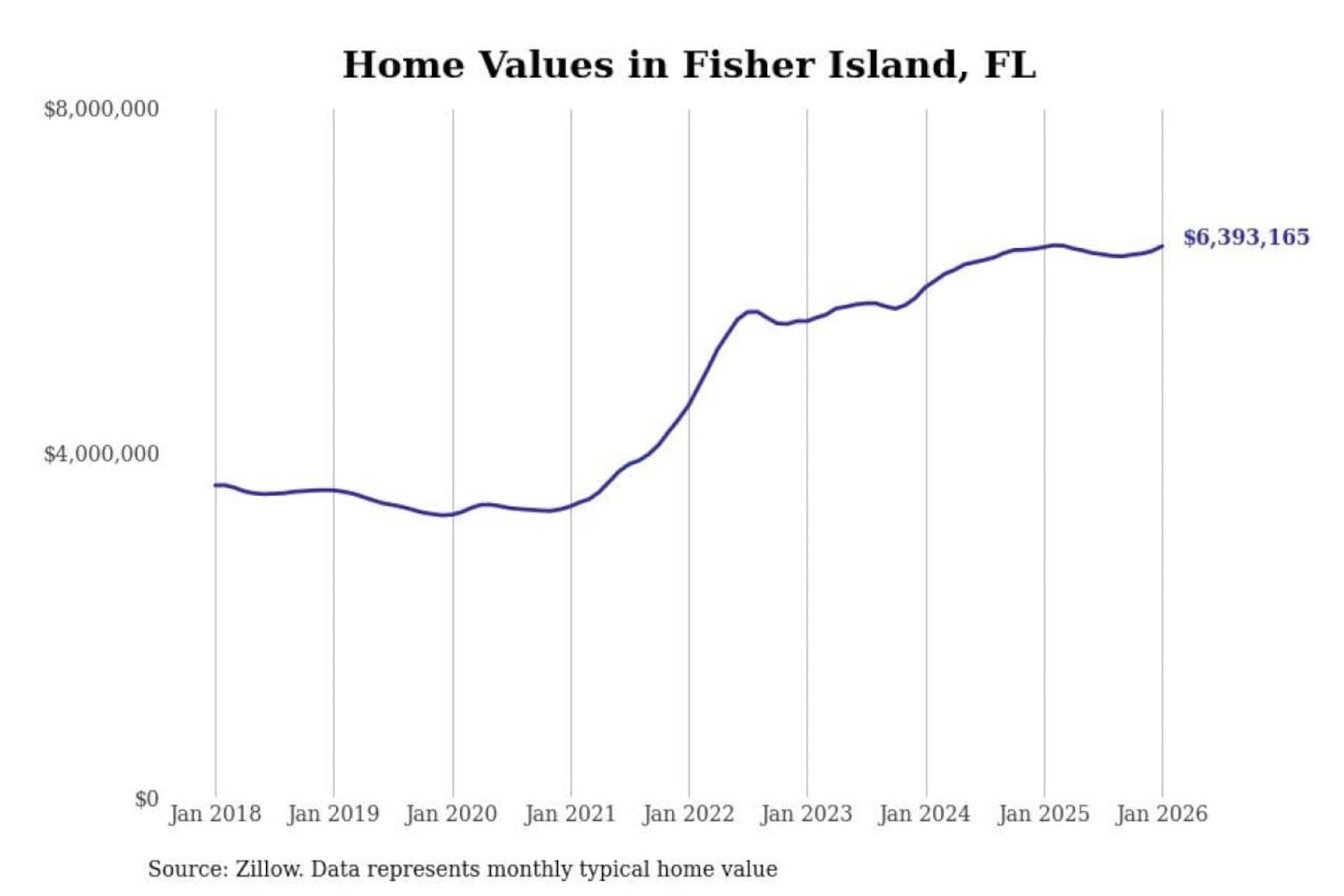 - Typical home value: $6,393,165