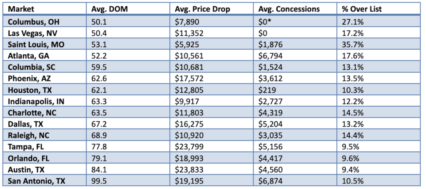 *Columbus concessions data shows as $0 or negative, which may reflect a reporting methodology difference in that market’s MLS.
