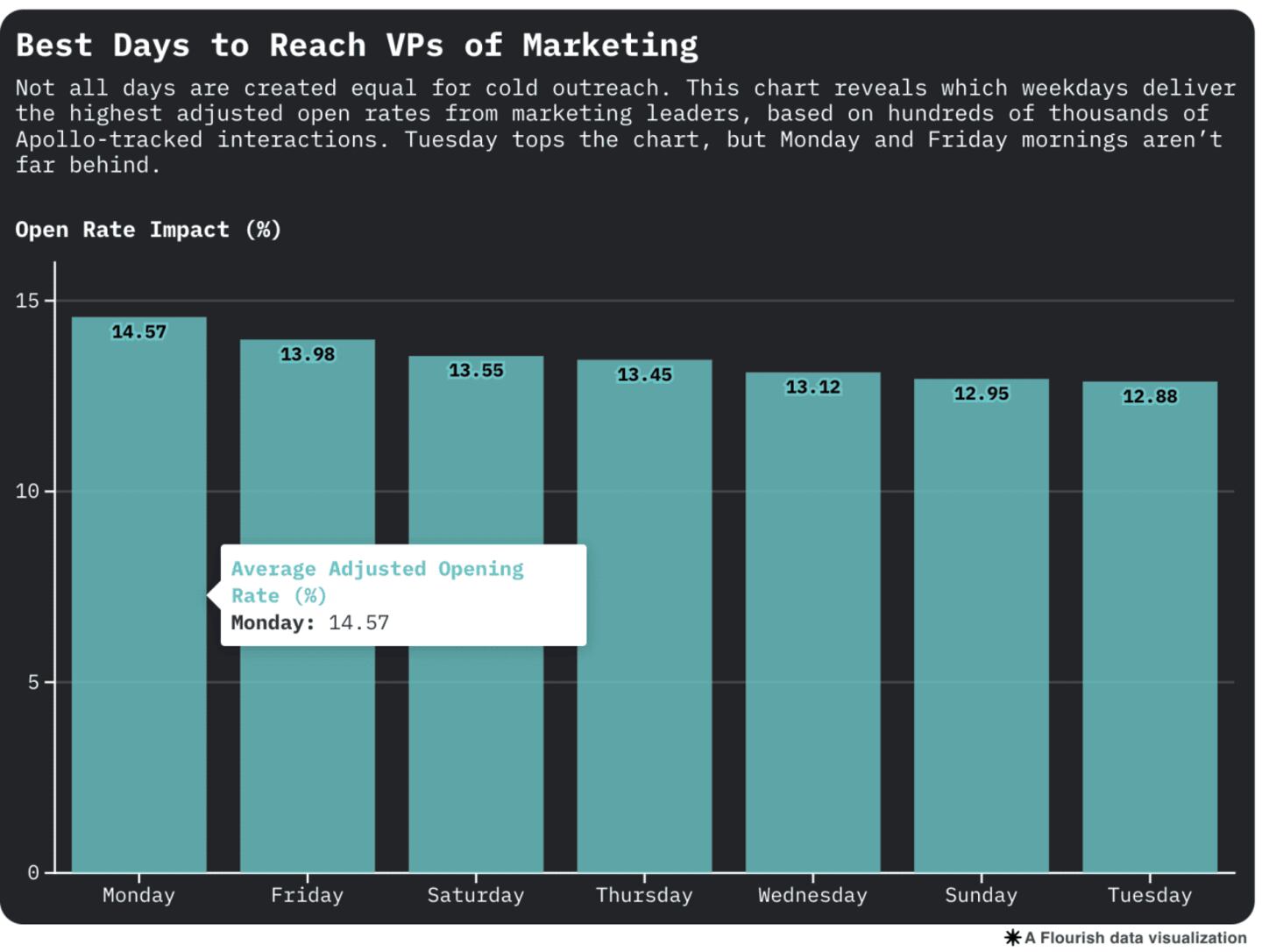 An Apollo.io analysis of hundreds of thousands of vice president‑level marketing interactions in 2025 uncovered the best times to send, the campaign types that get replies, and the messaging frameworks that cut through.