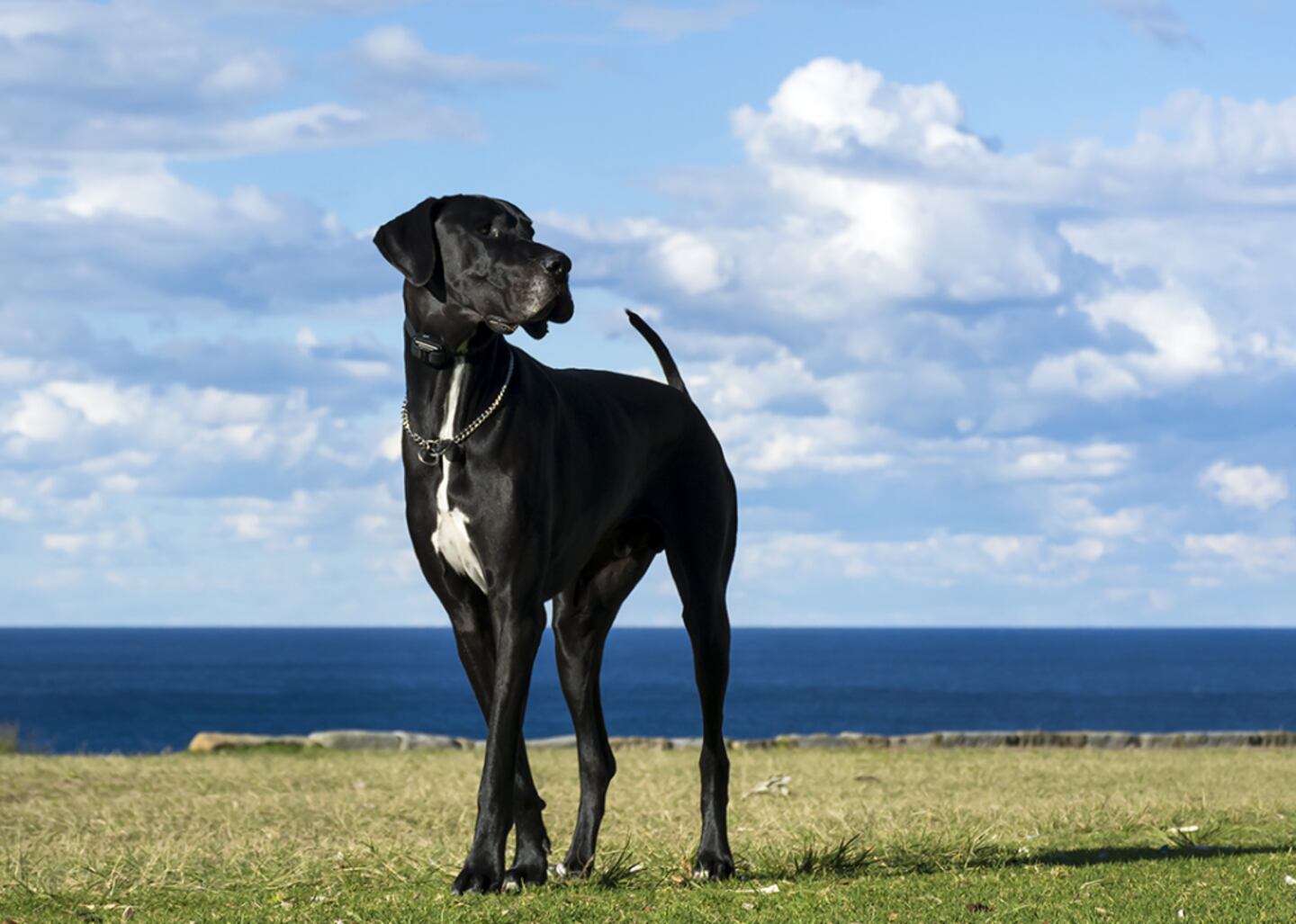 Possibly best known for their fictional counterparts Scooby-Doo and Marmaduke, this giant breed's physical size is matched only by the size of its heart. Commonly standing as tall as 32 inches at the shoulder, Great Danes are often referred to as the "Apollo of dogs." They are gentle giants with very affectionate personalities and sometimes seem to be oblivious about their size as they enjoy cuddling up on their owners' laps. However, while Great Danes are tender to their family members and other friendly individuals, these dogs will not hesitate to protect loved ones if the need arises.