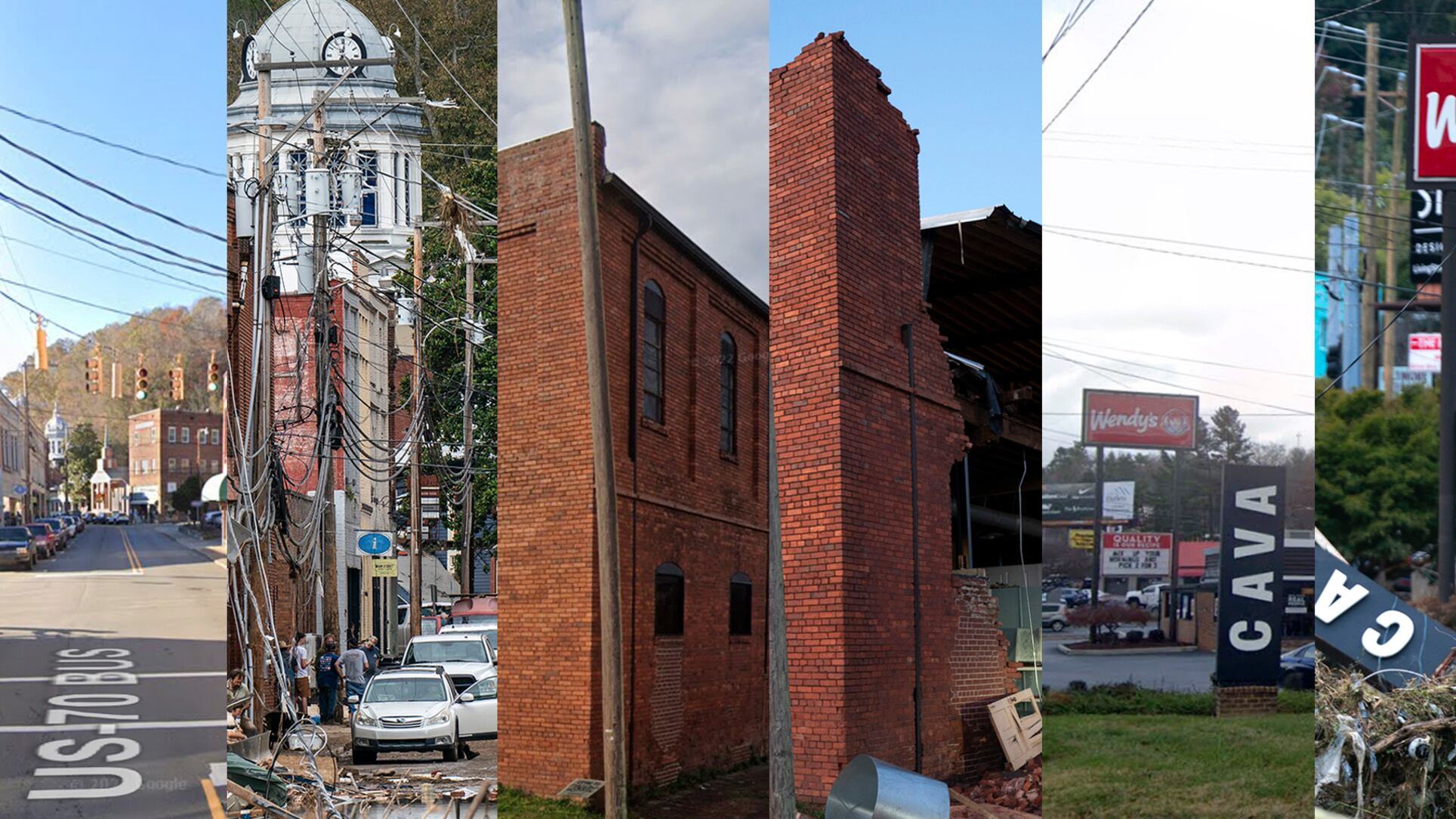 The destruction is a stark contrast to the green landscapes these regions were known for before Helene unleashed her fury. Here’s a look at some before-and-after photos.