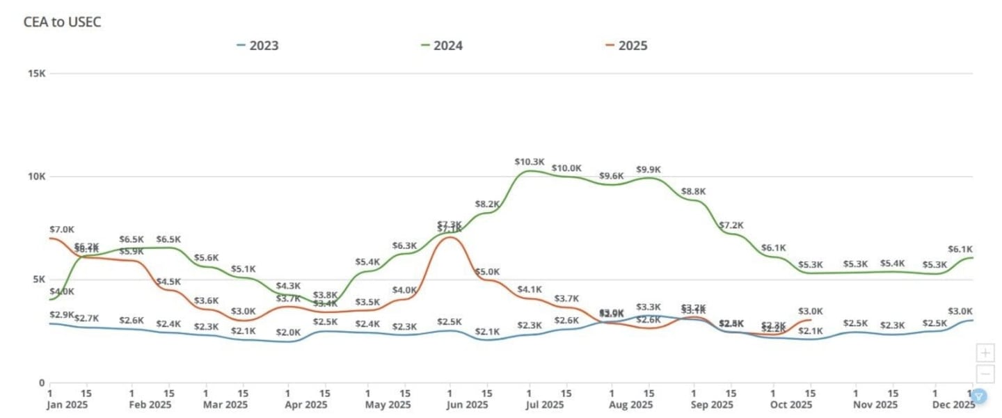 China (CEA) to United States East Coast (USEC): FEU spot freight rates rose about $700–$800 w/w to roughly $3,000–$3,100/FEU, but is unlikely to hold given transit times that miss the Nov. 1 tariff risk window.