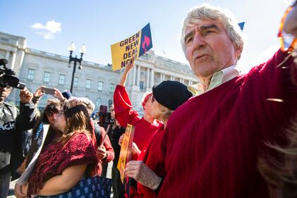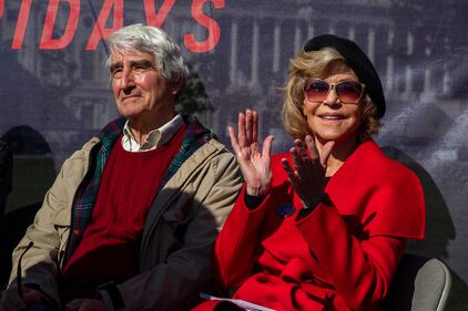 Sam Waterston Actors Sam Waterston, left, and Jane Fonda attend a rally on Capitol Hill in Washington, Friday, Oct. 18, 2019. A half-century after throwing her attention-getting celebrity status into Vietnam War protests, Fonda is now doing the same in a U.S. climate movement where the average age is 18. (AP Photo/Manuel Balce Ceneta) (Manuel Balce Ceneta/AP)