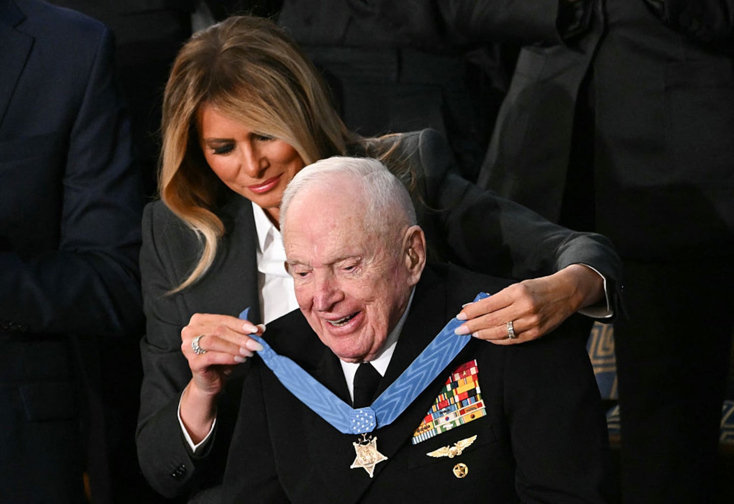 “His story was secret for over 50 years. He didn’t even want to tell his wife, but the legend grew and grew. But tonight, at 100 years old, this brave Navy captain is finally getting the recognition he deserves. He was a legend long before this evening. Royce, please stand up and I will ask the First Lady of the United States to present Captain Royce Williams with his Congressional Medal of Honor.