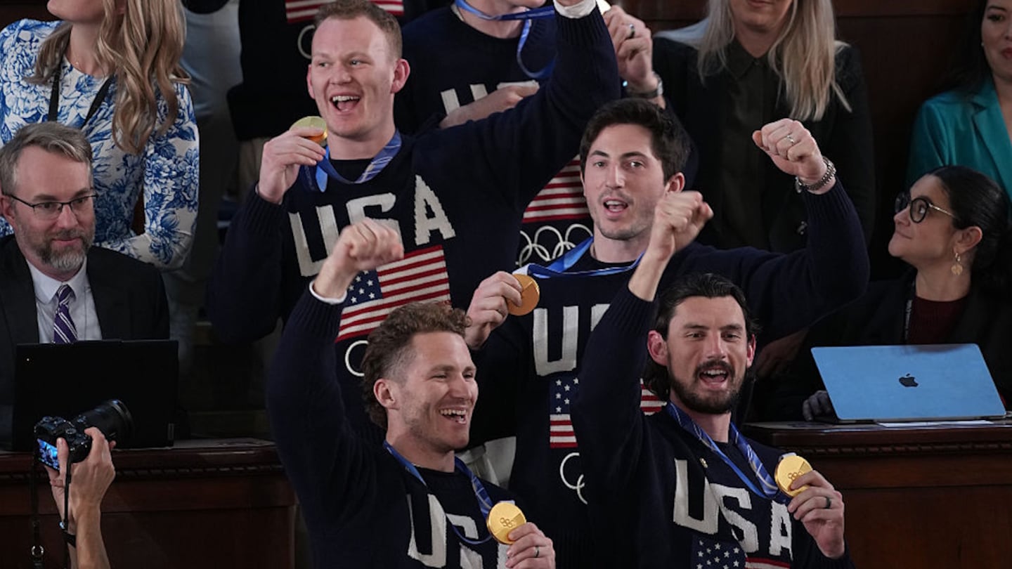 “So I want to thank you all. What a special job you did, what special champions you are. Thank you very much. I’m also pleased to say that the next time the Olympic torch is lit, it will be here in America for the 2028 Olympics and it’s the summer version right in Los Angeles. We’re going to do a good job in Los Angeles.
